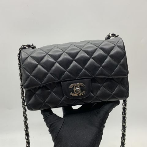 LAMB SKIN MINI FLAP 19CM BLACK SHW, NO.23 W/CARD A69900