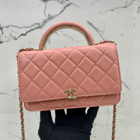 LAMBSKIN AP2844 WALLET ON CHAIN CORAL 2WAY RFID MICROCHIP
