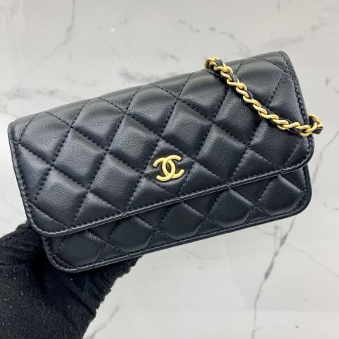 LAMBSKIN FLAT PHONE FOLDER CHAIN PEARL CRUSH RFID