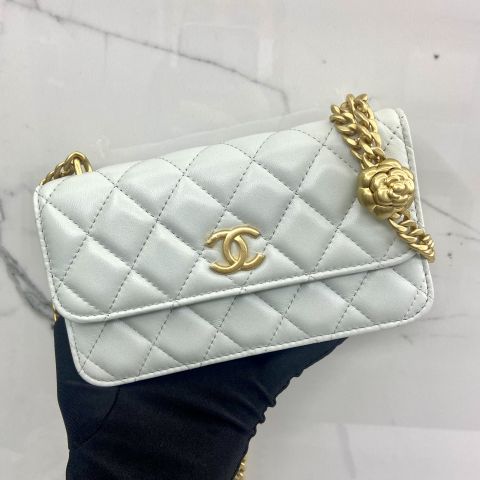 LAMBSKIN FLAT PHONE HOLDER CHAIN CAMELLIA PEARL CRUSH AP3298