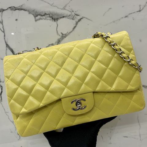 LAMBSKIN JUMBO 30CM SINGLEFLAP YELLOW NO CARD, NO HOLO