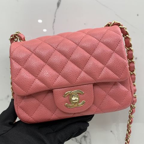MINI SQUARE CAVIAR SKIN CHAIN SHOULDER PINK NO. 25 W/CARD