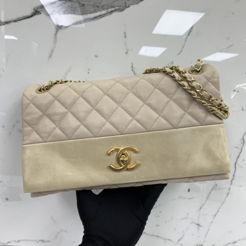 CHANEL BAG MATELASSE SINGLE FLAP 32CM TRIPLE POCKET BEIGE W/CARD NO.20 20309479
