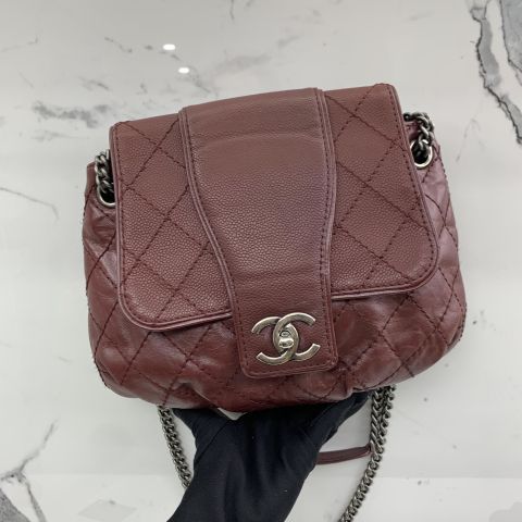 CALF/CAVIAR CHAIN SHOULDER MAROON NO.19 RECOLOURED W/CARD