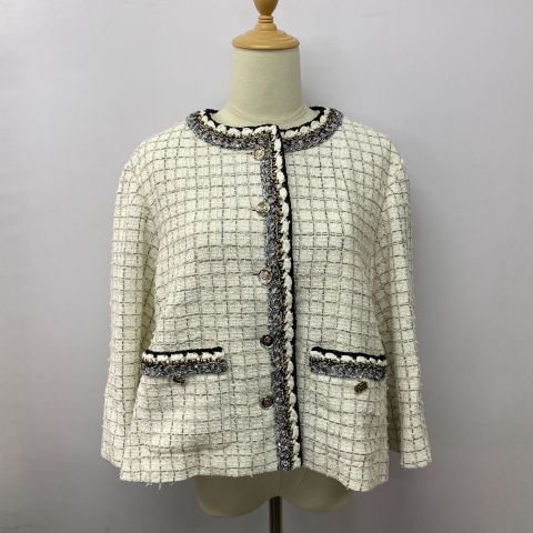 CHANEL CLOTHES JACKET P79364 WHITE, TWEED FLARED