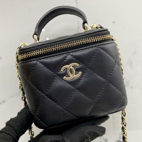Chanel Mini Black Vanity Top Handle in Lambskin