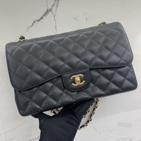 Chanel No. 19 Jumbo Classic Flap Bag in Caviar Skin