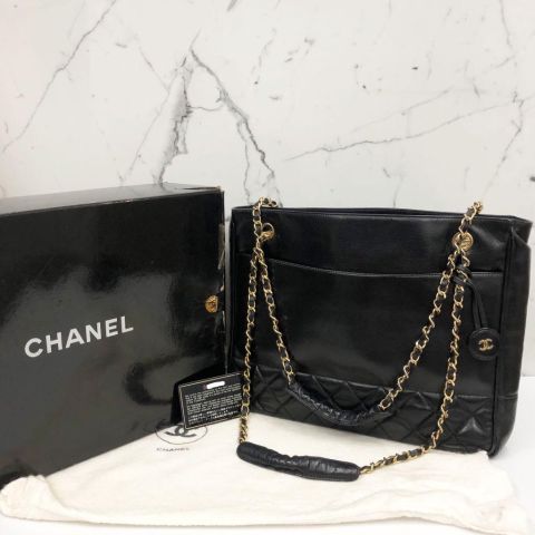 Chanel No.0 Vintage Chain Tote Bag, Black Calfskin Leather