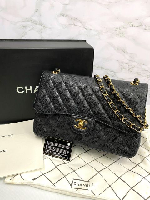 Chanel No.16 Jumbo Classic Flap Bag, Black Caviar Skin Leather
