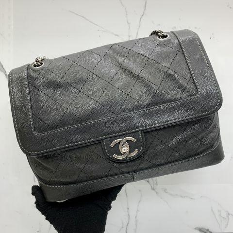 Chanel No.17 Chain Shoulder Bag in Caviar Skin