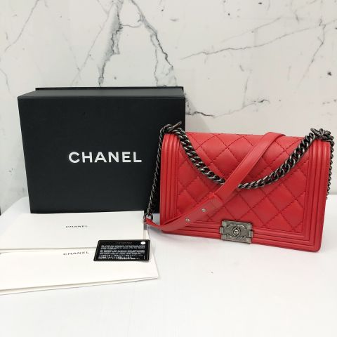 Chanel No.18 Boy Handbag, Red Calfskin Leather