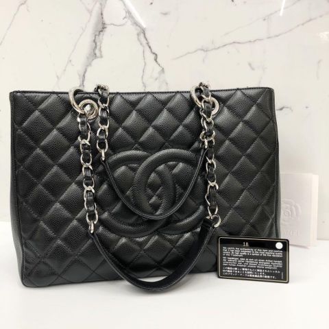 Chanel No.18 Grand Shopping Tote, Black Caviar Skin Leather