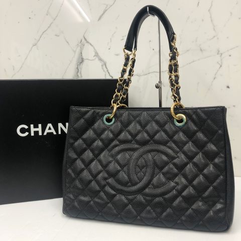 Chanel No.20 Grand Shopping Tote, Black Caviar Skin Leather