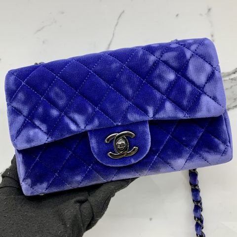 Chanel No.20 Mini Rectangle Blue Velvet Classic Flap Bag