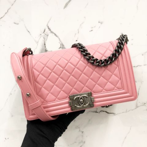Chanel No.21 Medium Boy Handbag, Pink Lambskin Leather