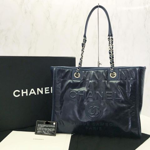 Chanel No.22 Deauville Tote, Navy Calf Skin Leather
