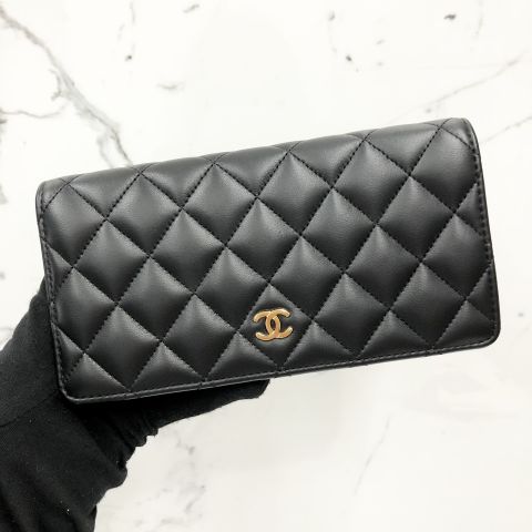 Chanel No.22 Long Flap Wallet, Black Lambskin Leather