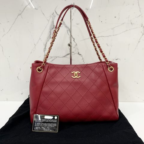 Chanel No.23 Chain Tote Bag, Red Stitched Calfskin Leather