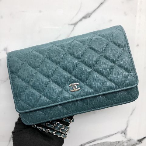 Chanel No.24 Green Wallet on Chain in Caviar Skin