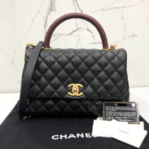 Chanel No.25 Coco Handle Bag, Black Caviar Skin Leather