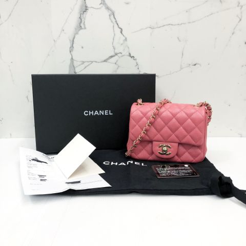 Chanel No.25 Mini Square Chain Shoulder Bag, Pink Caviar Skin Leather