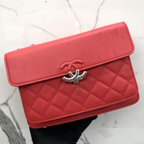 Chanel No.25 Red Chain Shoulder Bag in Calfskin