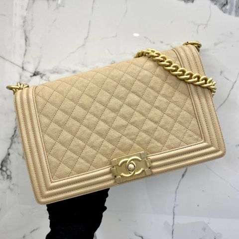 Chanel No.28 Boy Medium in Beige Caviar Skin