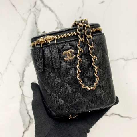 Chanel No.29 Mini Vertical Coco Beauty Vanity Case, Black Caviar Skin Leather