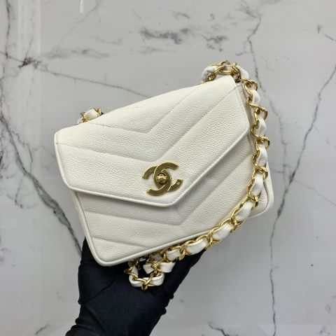 Chanel No.3 Chain Shoulder Bag in Caviar Skin