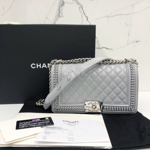 Chanel No.30 Medium Boy Handbag, Grey Blue Calfskin Leather