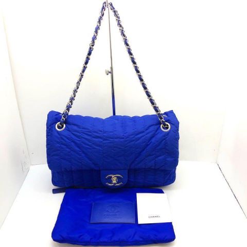 Chanel Nylon Chain Shoulder Bag Blue NO16