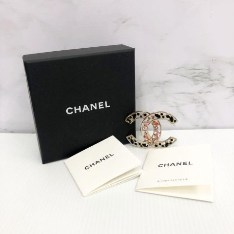 Chanel Pink and Black Stone Brooch