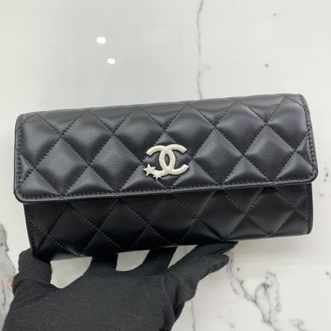 BLACK LAMBSKIN LONG WALLET RFID COCOMARK STAR AP3724