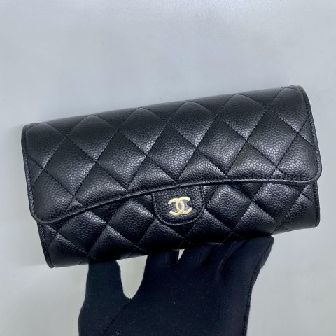 CAVIAR SKIN LONG WALLET GHW BLACK MICROHIPPED