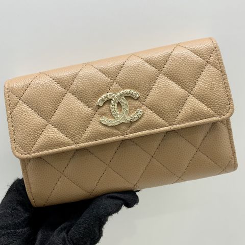 CC COCO CAVIAR COMPACT WALLET TRI FOLD MICROCHIPPED RFID
