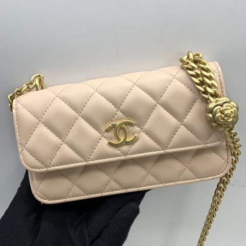 LAMBSKIN CAMELLIA CRUSH WALLET ON CHAIN RFID