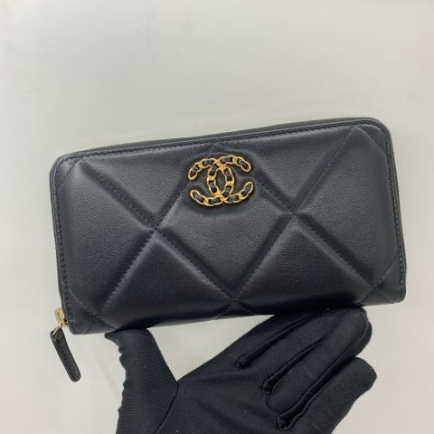 19 BLACK LAMBSKIN ROUND ZIP LONG WALLET NO.31 WC