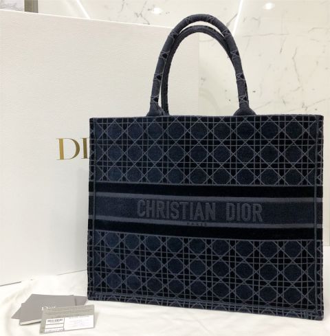 Dior Book Tote, Blue Cannage Embroidered Velvet