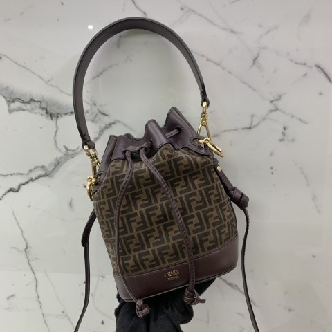 FENDI BAG 8BS010 SUEDE DRAWSTRING BUCKET ZUCCA