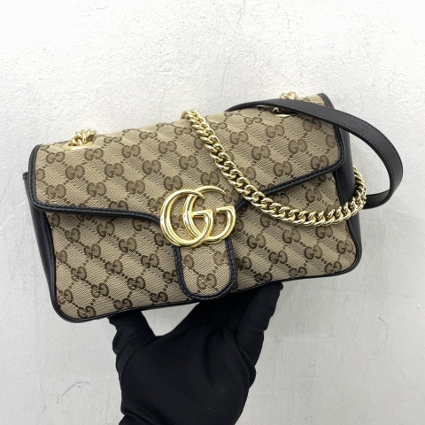 GUCCI BAG GG 443497 GG CHAIN SHOULDER CANVAS BLACK