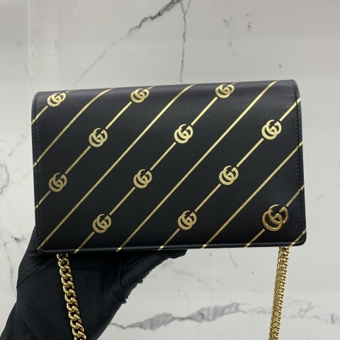 GUCCI BAG GG 548075 LEATHER CHAIN ON WALLET BLACK