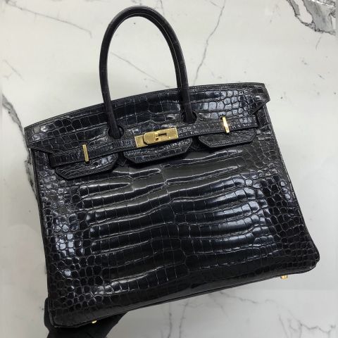 Hermes Bag Birkin Porosus GHW BLKPUR, C Stamp