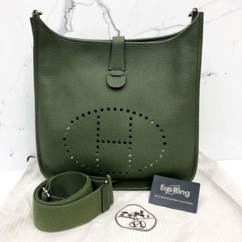Hermes Bag Evelyn III GM in Green Clemence Leather, Q Stamp