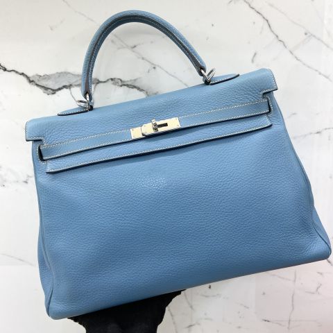 Hermes Bag Kelly 35 Blue With Strap and Lock, J Stamp