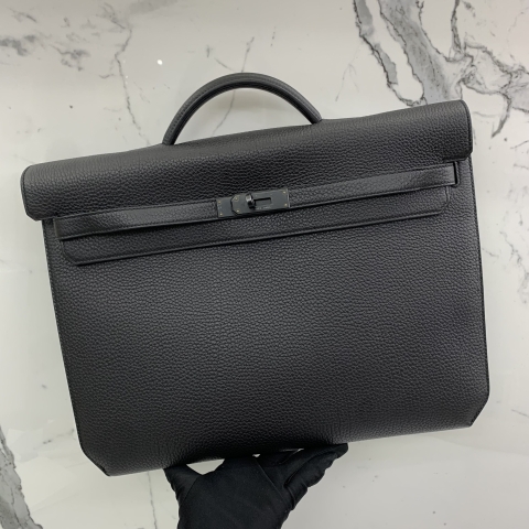 HERMES BAG KELLY DEPECHES 36 MONOCHROME BLACK TOGO B STAMP