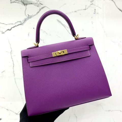 Hermes Bag Kelly Purple 25 No Lock, C Stamp