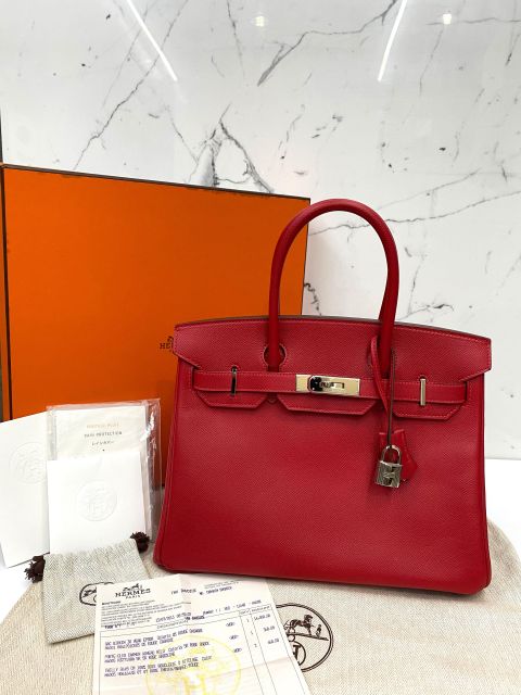 Hermes Birkin 30, Rouge Casaque Epsom, Q stamp