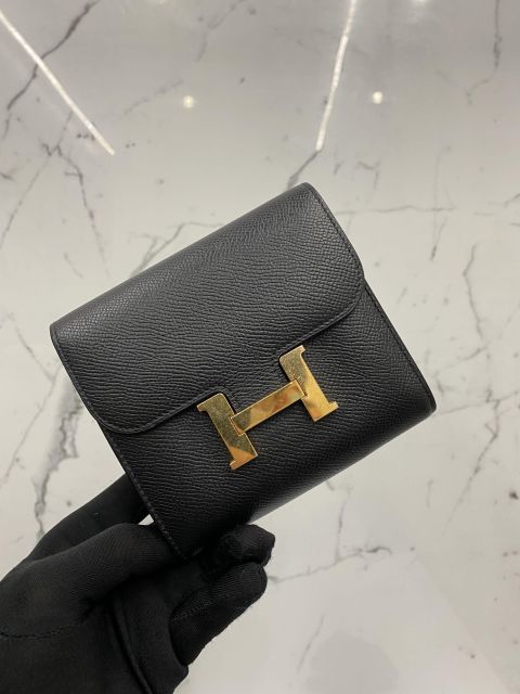 Hermes Constance Compact Wallet, Noir Epsom, C stamp