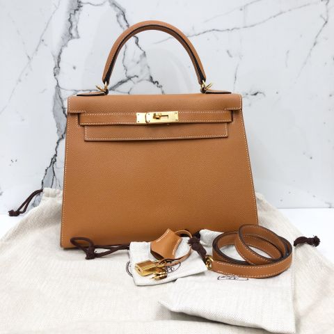 Hermes Kelly 28, Gold Epsom, GHW, A Stamp