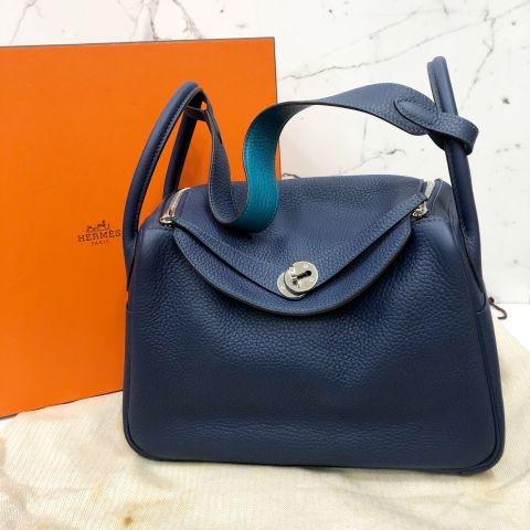 Hermes Lindy 30, Bleu Saphir Clemence, Q Stamp